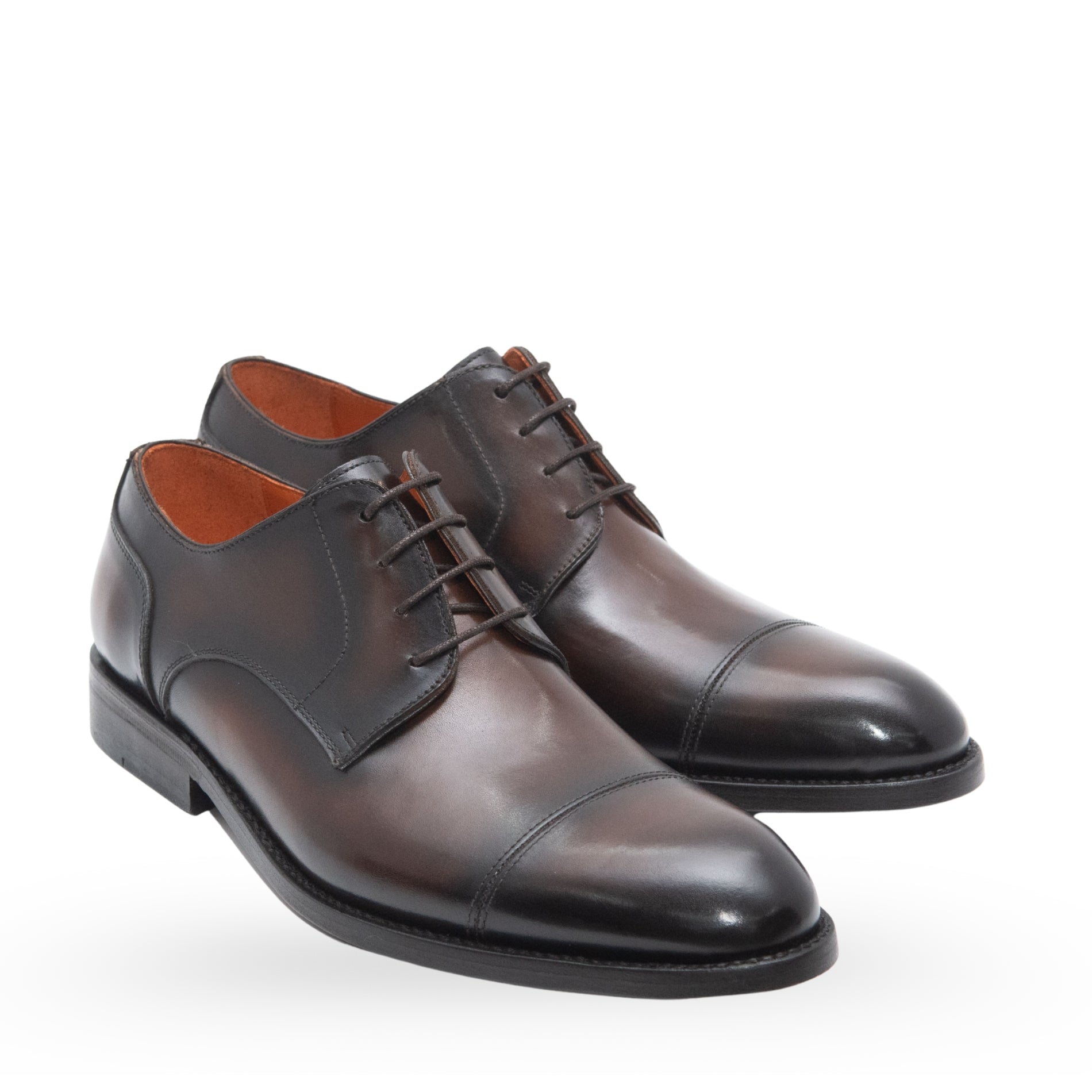 Zapato de cordones patinado a mano. Fabricación Goodyear artesanal